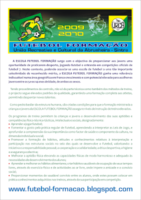Nele existia o nome de um blog http://www.futebol-formacao.blogspot.com/, fui espreitar e fiquei feliz por ver que na nossa terra começam a aparecer actividades para os mais novos.